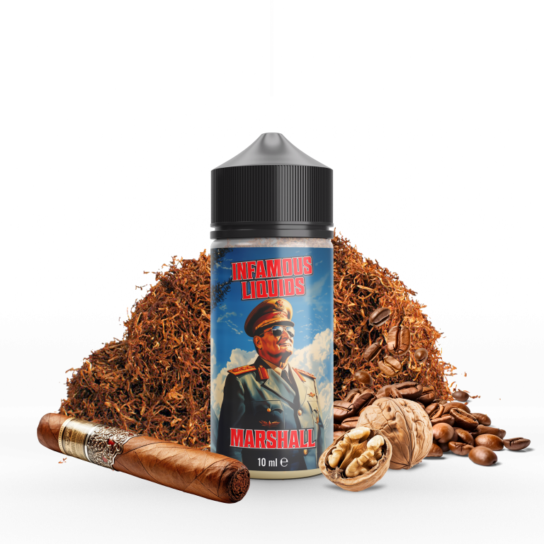Marshall una combinación de hasta tres tipos diferentes de tabaco, acompañados de matices de puro, nuez y café, que definen el carácter único de esta mezcla.